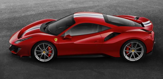 Dal punto di vista tecnico, la nuova Ferrari propone una massa totale di 1.280 Kg (-90 Kg rispetto alla 488 “standard”), con una riduzione di peso dovuta all’arrivo di inediti cerchi da 20 pollici in fibra di carbonio, con lo stesso materiale usato per produrre cofano, paraurti e lo spoiler posteriore. Passando al motore, il V8 3.9 Biturbo è stato potenziato fino a raggiungere quota 720 CV (con una potenza specifica di 185 CV/litro), con 770 Nm di coppia massima, mentre a livello costruttivo ha beneficiato di collettori di scarico in Inconel, un albero motore con volano alleggeriti, bielle in titanio e polmoni di aspirazione in fibra di carbonio. Per quanto riguarda le prestazioni, infine, la nuova sportiva di Maranello dichiara uno scatto da 0 a 100 Km/h completato in 2,83 secondi, uno da 0 a 200 Km/h archiviato in 7,6 secondi e una velocità massima che supera i 340 Km/h.