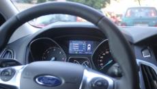 Al volante della nuova Focus TDCi 115 CV equipaggiata con ECOnetic Technology nel mezzo del traffico impazzito verso lo Stadio Olimpico per la prima tappa del tour italiano di Madonna