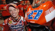 Loris Capirossi: "Questo fine settimana abbiamo faticato tantissimo e solo ieri siamo riusciti a trovare un set up migliore. Quando questa mattina mi sono svegliato e ho visto che pioveva mi sono detto: "Uau, sarà una giornata dura". Non sapevamo bene che gomme usare quindi abbiamo cominciato con pneumatici da pioggia, medi. I primi giri sono stati difficili quindi ho deciso di rientrare molto presto. La mia tattica è stata di sicuro la migliore perché mi ha permesso di vincere qui per la terza volta consecutiva. E' un bel momento per me. E' un grande giorno anche per Casey, per la Ducati e per il team. Voglio fare le congratulazioni a Casey, è un pilota fortissimo e io sono davvero contento per lui".