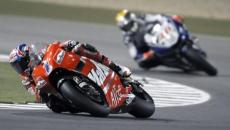 Arretrati... Ottavo Loris Capirossi con la Suzuki e undicesimo Melandri con l’altra Ducati ufficiale. Alex De Angelis è caduto a cinque giri dal termine quando si trovava in decima posizione.
