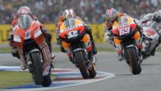 Casey Stoner: "Sapevamo di avere il passo per puntare alla vittoria ma a volte questa consapevolezza prima delle gara rischia di renderti ancora più nervoso perchè sai bene che l'unica cosa che può andare storta... sei tu stesso! Considerando poi come è andata la gara della 125cc, ci si è messo anche il meteo a complicare le cose tanto che mi sono detto che sarebbe stato un classico che iniziasse a piovere non appena fossi andato in testa. Fortunatamente non è andata così, sono riuscito effettivamente a portarmi al comando e a girare sul passo che avevamo dimostrato di avere durante il week-end sull'asciutto. Mi spiace che Valentino sia caduto perché non è questo il modo in cui voglio recuperare punti in classifica ma effettivamente di sfortuna ne abbiamo avuta un bel po' anche noi quest'anno: le corse sono a volte sono un gioco imprevedibile. Per ora sembra che il vento sia cambiato a nostro favore ma io credo che più che questo, sia il caso di levarsi il cappello di fronte alla Ducati e alla mia squadra. Hanno fatto un lavoro eccezionale durante le ultime gare per permetterci di ritrovare competitività in maniera costante, quindi davvero un grande "Grazie!" a tutti loro".