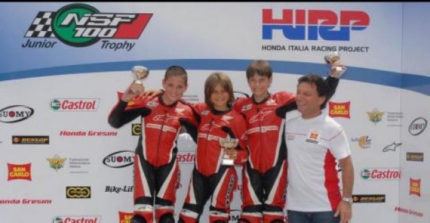 Fratello d'arte! Una bellissima gara quella corsa a Castelletto di Branduzzo, una pista velocissima ed allo stesso tempo estremamente tecnica. Quarta delle cinque gare del 2008 per i giovanissimi piloti (dai 10 ai 13 anni) iscritti al neonato NSF100 Junior Trophy, il monomarca riservato alle piccole moto da corsa sviluppate dalla HRC e preparate dai tecnici del Team San Carlo Honda Gresini, lo stesso della MotoGp. Dopo un’ottima prestazione nello scorso appuntamento di Corridoni, conclusa però con una caduta mentre teneva la posizione di testa, a Castelletto di Branduzzo prima vittoria per Luca Marini. Il piccolo pilota di Tavullia, fratello del pluricampione Valentino Rossi, ha lottato per tutta la gara con Kevin Arginò, riuscendo ad aver la meglio, con un distacco di soli 15 centesimi di secondo. La testa del campionato rimane, però, a Kevin Arginò con 70 punti. Un vero peccato per Luciano Leotta, secondo in campionato e caduto al primo giro. Leotta pur non ottenendo punti, riesce a mantenere la seconda posizione in classifica, condivisa ora con Federico Massa (terzo in questa gara). Da segnalare l’ottima prestazione di Alessandro Costantino, quarto, quella di Jacopo Negri ed sesto posto di Emauele Mastrella. Riccardo Rossi è settimo, seguito da Francesco Cecchini, Giorgio Antonucci e Federico Boscolo a chiudere i primi dieci.