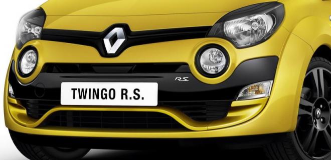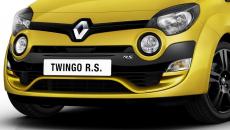 Esterno. Prima novità il colore carrozzeria Giallo Sirio, dal punto di vista estetico oltre al nuov pacchetto del restyling della nuova Twingo, la versione RS monta sull'avantreno un nuovo deflettore aerodinamico "tipo F1" nel paraurti. I passaruota più larghi con estrattori d’aria sottolineando il carattere sportivo del modello, insieme ai cerchi in lega da 16 pollici e pneumatici sportivo.