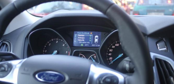AL VOLANTE DI FOCUS CON ECOMODE. Tra la tanta tecnologia di bordo della nuova Ford Focus TDCi 115 CV Station Wagon oggetto della nostra prova c'è l'Eco Mode di ECOnetic Technology.