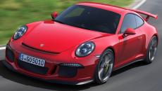 MOTORI. Il 6 clindri boxer da 3,8 litri della 911 GT3 è stato potenziato rispetto al propulsore standard della Carrera S è dotato di lubrificazione forzata a carter secco per assicurare a tutte le componenti adeguata lubrificazione in caso di forti accelerazioni trasversali e longitudinali, tipicamente molto elevate durante l’impiego in pista, iniezione diretta, bielle in titanio, condotto di aspirazione con valvola di risonanza e impianto di scarico specifico che riduce la contropressione dei gas di scarico aumentando la potenza. Questa raggiunge i 475 CV di potenza massima (125 CV/l) a a 8.250 giri/min e il picco di coppia di di 440 Nm è raggiungibile a 6.250 giri. La nuova 911 GT3 passa da 0 a 100 km/h in soli 3,5 secondi (0,6 secondi in meno rispetto al modello precedente) e raggiunge i 200 km/h in 11,4 secondi, cioè 0,9 secondi in meno del modello precedente. La velocità massima è di 315 km/h.