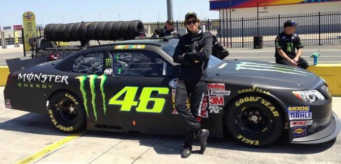 Fresco di ritorno sulla Yamaha ufficiale su cui ha conquistato un sesto posto nel GP di Austin della MotoGP, Valentino Rossi si è spostato dopo la gara allo Charlotte Motor Speedway dove ha preso parte per la prima volta ad un test su una vettura della Nascar Nationwide Series, la serie "cadetta" della seguitissima serie per stock car americana. Sull'ovale del North Carolina il "Dottore" ha preso il volante di una Toyota Camry della Kyle Busch Motorsport, uno dei team "big" della Nascar di proprietà del noto pilota Kyle Busch, personalizzata nella livrea preferita di Valentino con carrozzeria in nero opaco e il numero feticcio "46" in giallo fluo in bella evidenza sulle portiere.