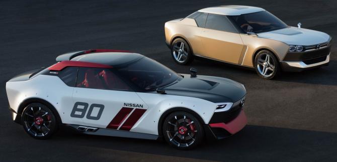 IDx NISMO. Le concept IDx condividono il classico design a 3 volumi volutamente retrò, ma il look è molto differente. La IDx Nismo rappresenta infatti una coupé sportiva che ripropone la classica livrea della divisione sportiva della Casa giapponese, dunque spazio agli elementi tipici della auto ad alte prestazioni come spoiler, minigonne e diffusore.