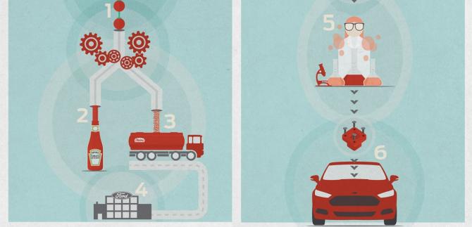 Nike, Coca-Cola, Procter & Gamble e adesso Heinz: prosegue la cooperazione di Ford Motor Company con le maggiori multinazionali per incrementare l’utilizzo a bordo delle proprie vetture di materiali riciclati o ricavati da fonti sostenibili. L'ultimo progetto per la realizzazione di bioplastiche coinvolge la Casa dell'Ovale Blu e Heinz, noto colosso del ketchup, nell'obiettivo di sviluppare nuovi materiali ricavati dagli scarti di lavorazione dei pomodori.