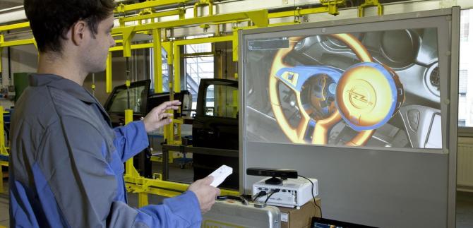 Opel spega così il processo di formazione di che sfrutta la Wii una telecamera Microsoft Kinect: "Quali sono le parti che devo assemblare in un airbag? Che aspetto hanno, dove vanno e in che ordine devono essere installate? Durante la formazione virtuale vengono fornite le risposte a domande di questo tipo, mentre gli utensili e le parti in questione appaiono su un grande schermo. L’utilizzatore si trova proprio davanti allo schermo e può muoversi in qualsiasi direzione. La telecamera lo segue e riproduce i movimenti sul video. L’operatore può scegliere un componente premendo il pulsante della Wii e poi inserirlo nella posizione stabilita. Il compito viene considerato concluso quando tutte le parti sono state messe nelle posizioni corrette, proprio come in un videogioco".