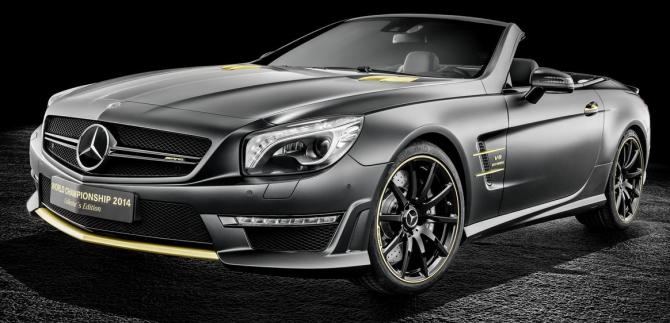 In casa Mercedes è ancora festa per la conquista del titolo mondiale Formula 1 cinquant'anni dopo l'ultimo vinto dal leggendario Fangio. Artefici principali del successo sono stati i combattivi Lewis Hamilton e Nico Rosberg, vittoriosi in ben sedici occasioni su diciannove Gran Premi disputati nel 2014 e a loro due è dedicata la "World Championship 2014 Collector’s Edition" della Mercedes SL 63 AMG, una serie speciale di diciannove vetture (una per GP) dedicate sia al Campione del Mondo che al suo compagno di squadra e distinte per la livrea nera nel caso di Hamilton e bianca per Rosberg.