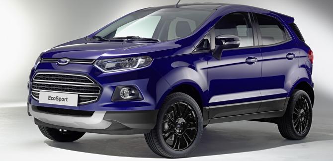 FORD ECOSPORT S. La EcoSport S si presentata a Ginevra come la sportiva della gamma: nuova tinta bicolor nero-blu, i cerchi in lega da 17 pollici, i vetri oscurati e il diffusore posteriore.